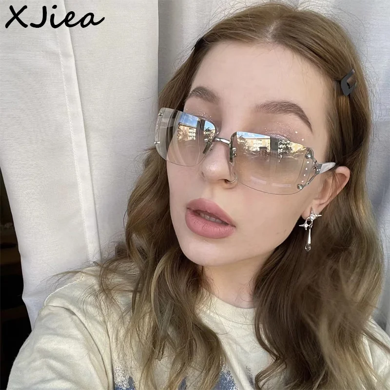 XJiea Y2K Women Sunglasses Designer Punk Rimless Sun Glasses For Men Cycilng Sports UV400 Gradient Lenses Shades Goggle